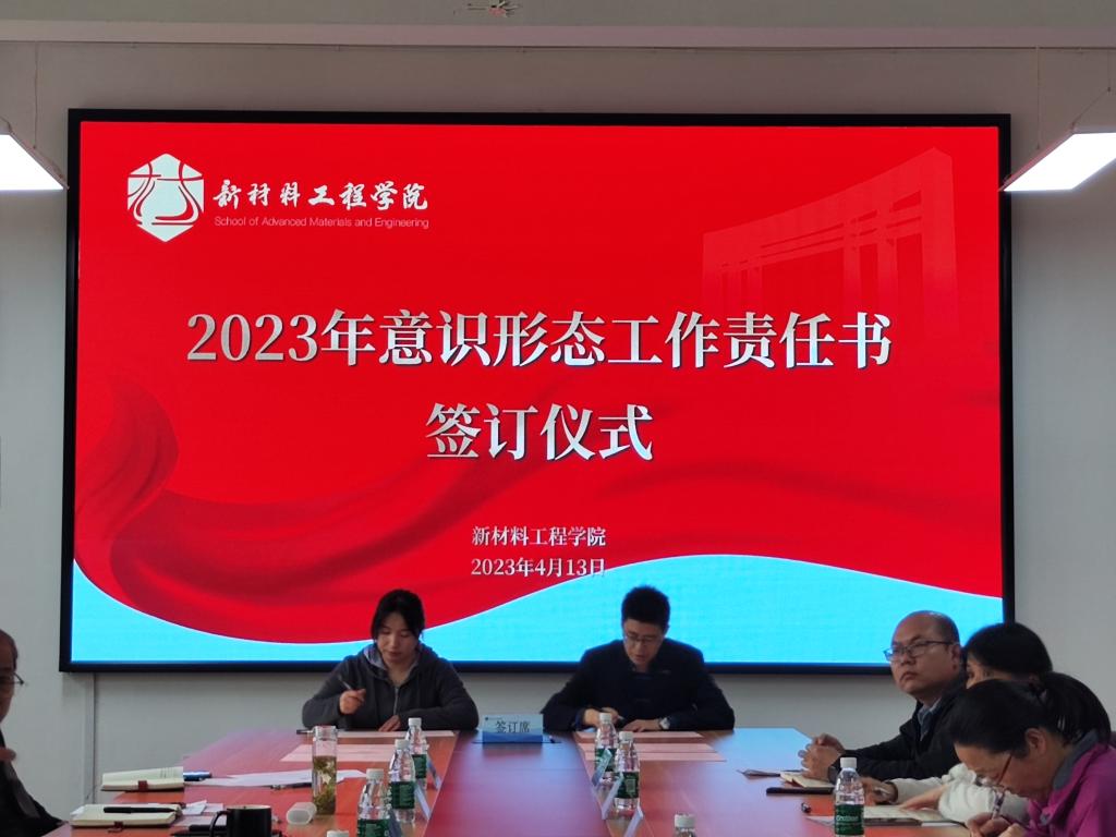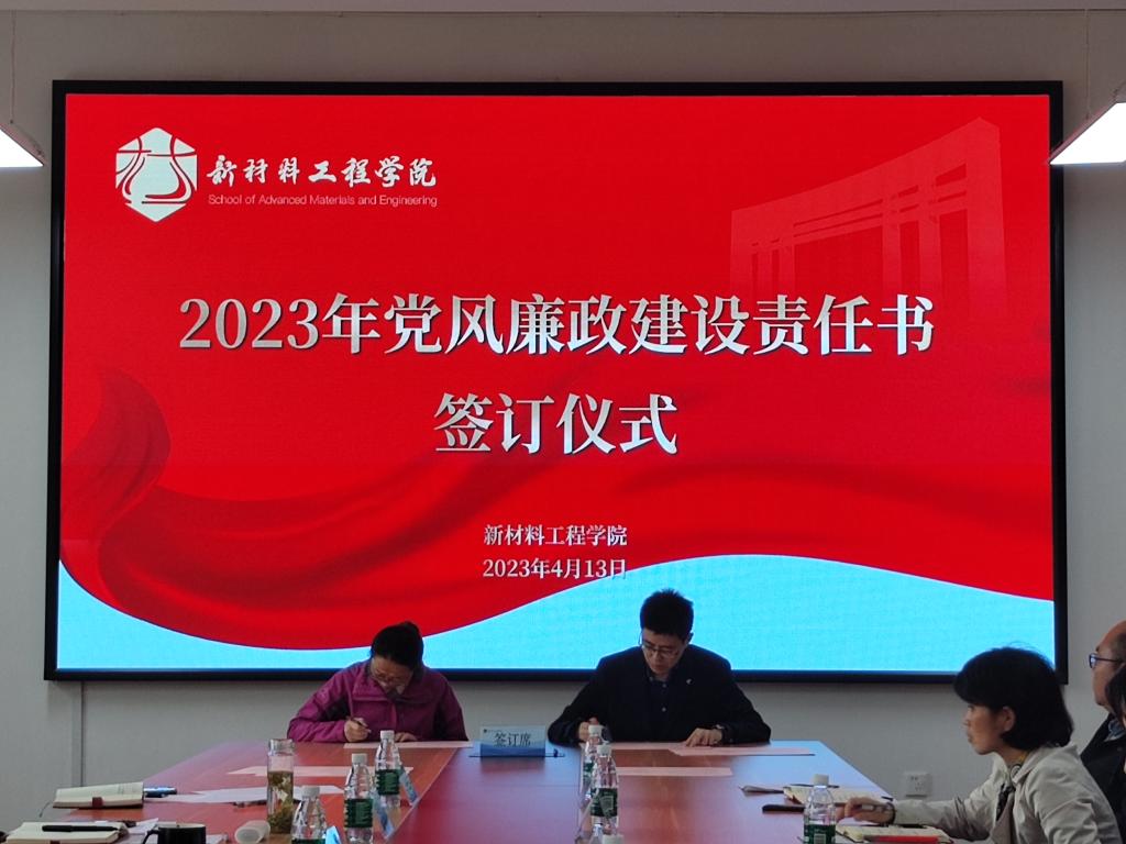 4月13日下午,学院2023年党风廉政建设责任书和意识形态工作责任书签订仪式在319会议室举行,学院党委理论学习中心组成员,学院各支部书记、支委,学院各专业负责人参会。