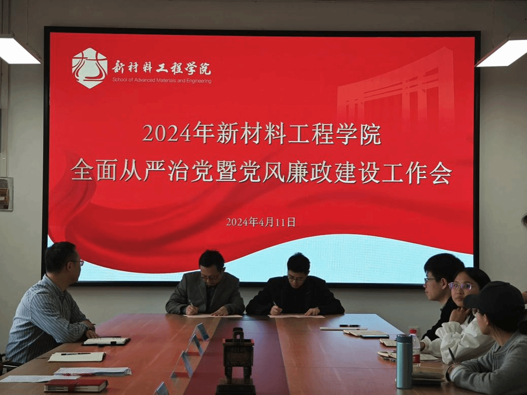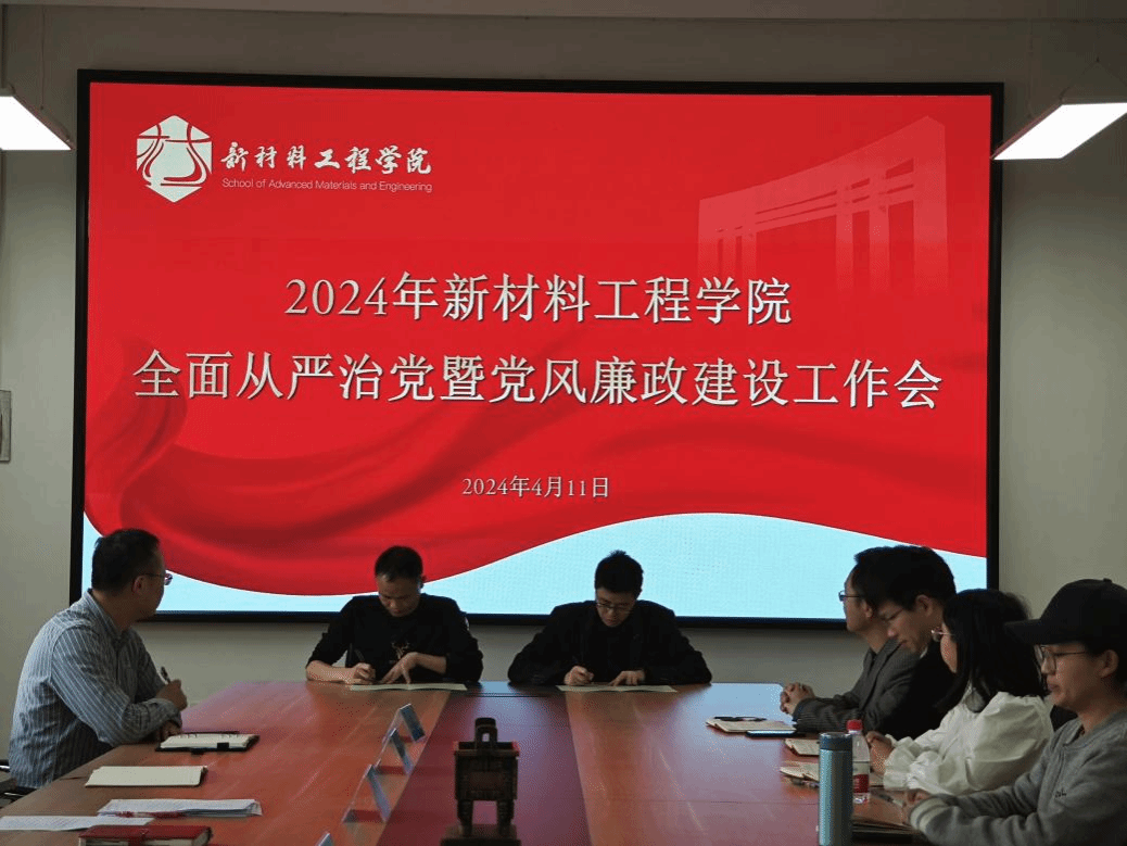 会上举行了2024年党风廉政建设责任书、基层党建工作责任书和意识形态工作责任书签字仪式。仪式上,郝涛代表学院党委同学院副院长解春松、孙诗清分别签订了2024年党风廉政建设责任书;同教工第一支部书记刘劲松、教工第二支部代表彭瑜分别签订了基层党建工作任务书;同学院党委副书记赵正喜、学工办主任陈晨分别签订了2024年意识形态工作责任书。
