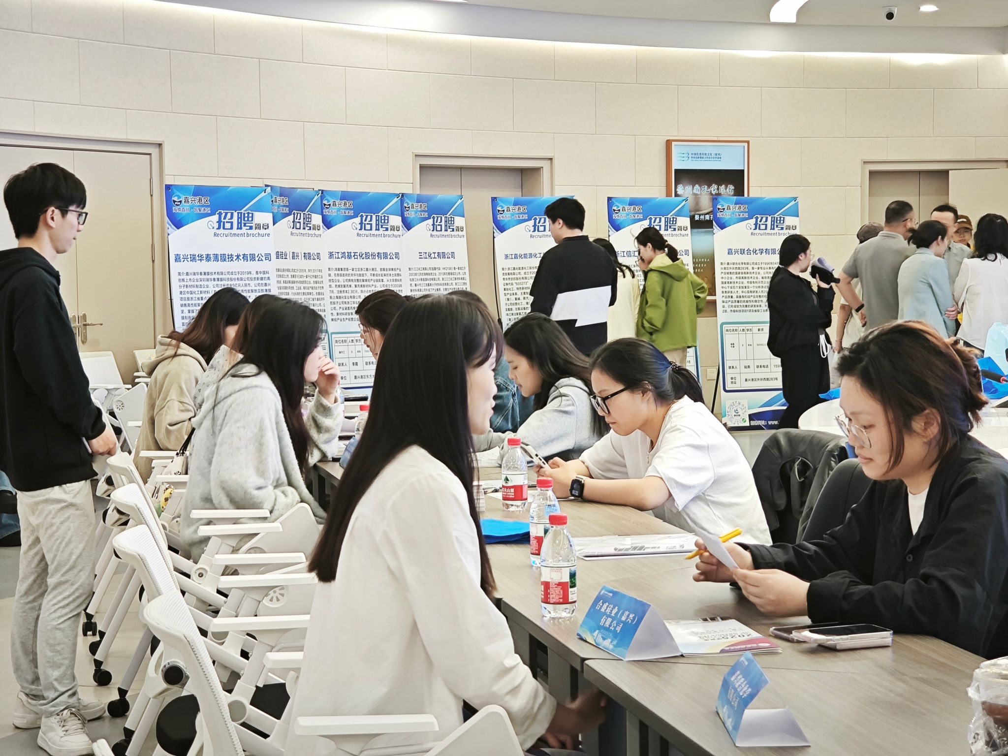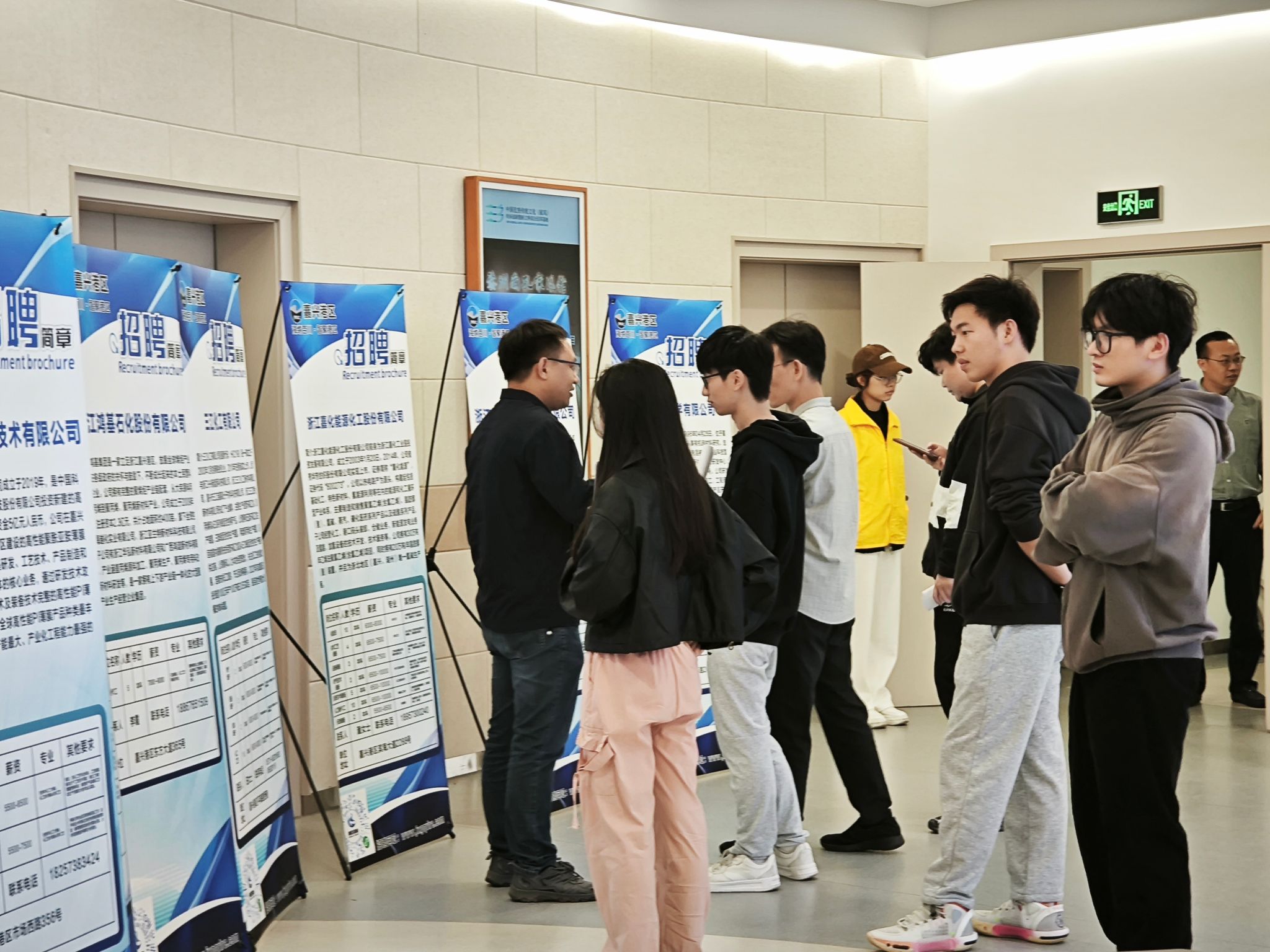 专场招聘会于电教楼融媒体中心拉开帷幕。浙江鸿基石化、帝人聚碳酸酯、瑞华泰薄膜技术等10家港区重点企业携研发工程师、工艺技术员、质量管理等50余个岗位进场揽才,覆盖高分子材料、新能源、环保科技等多个领域。