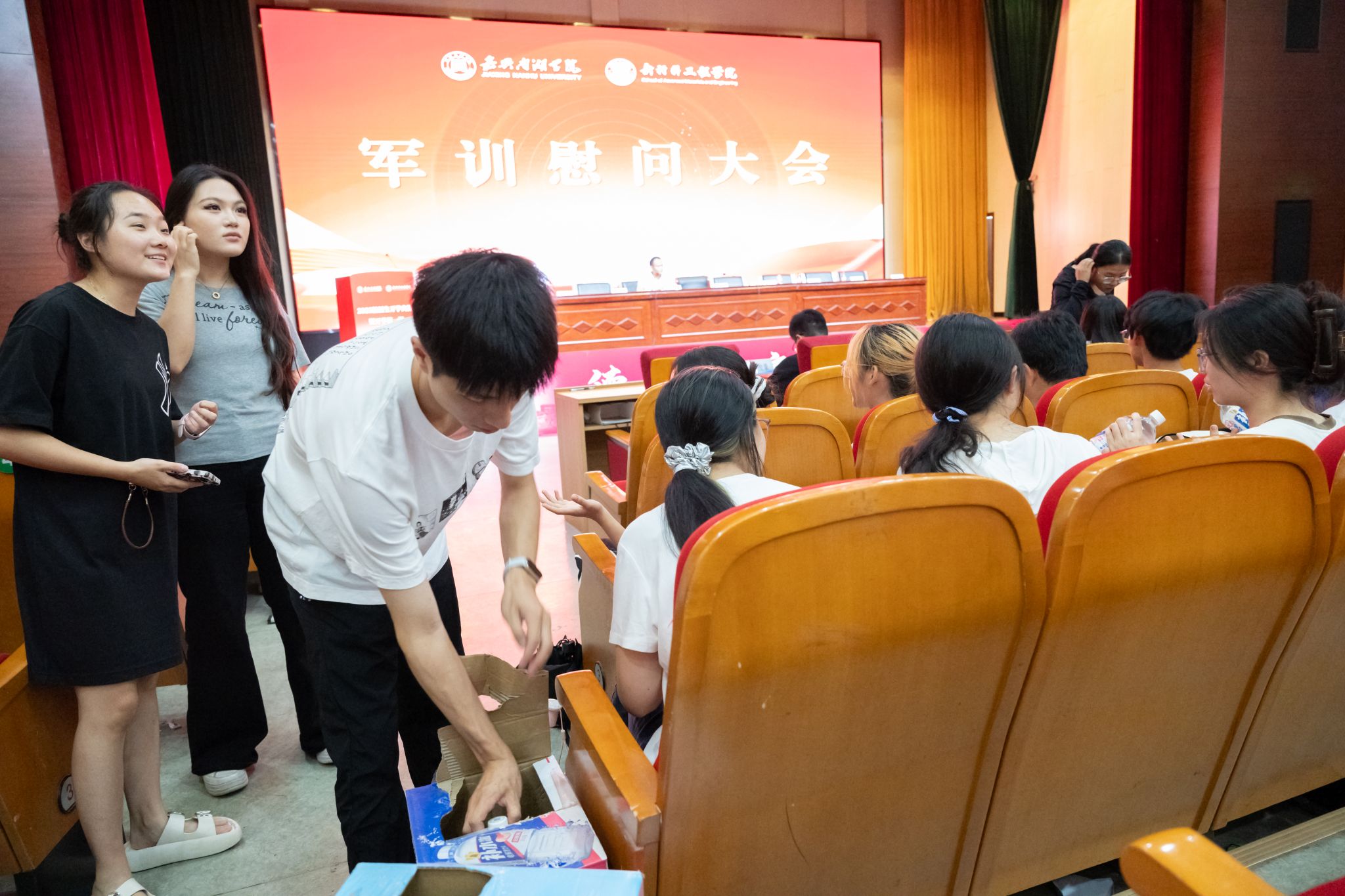 慰问会后,学院给每一位新生发放了饮料和学院纪念品。此次慰问大会不仅及时回应了新生军训期间的实际需求,也进一步强化了新生对学院的归属感和凝聚力。相信2025级新材学子必能以更昂扬的斗志和更团结的面貌,圆满完成军训任务,开启精彩大学篇章。