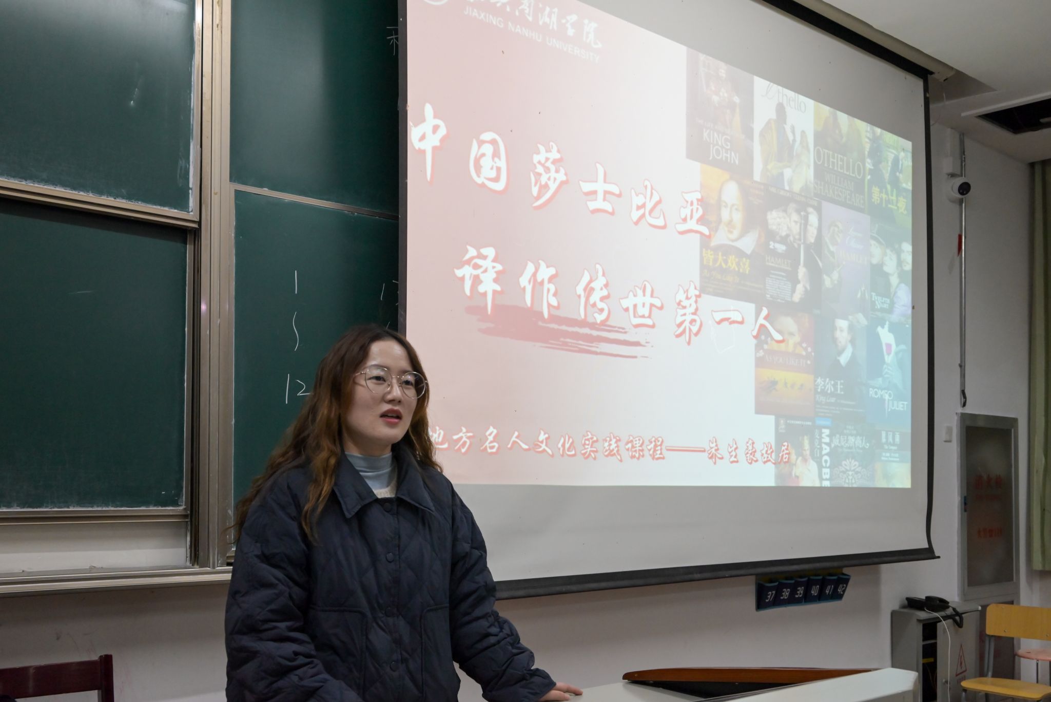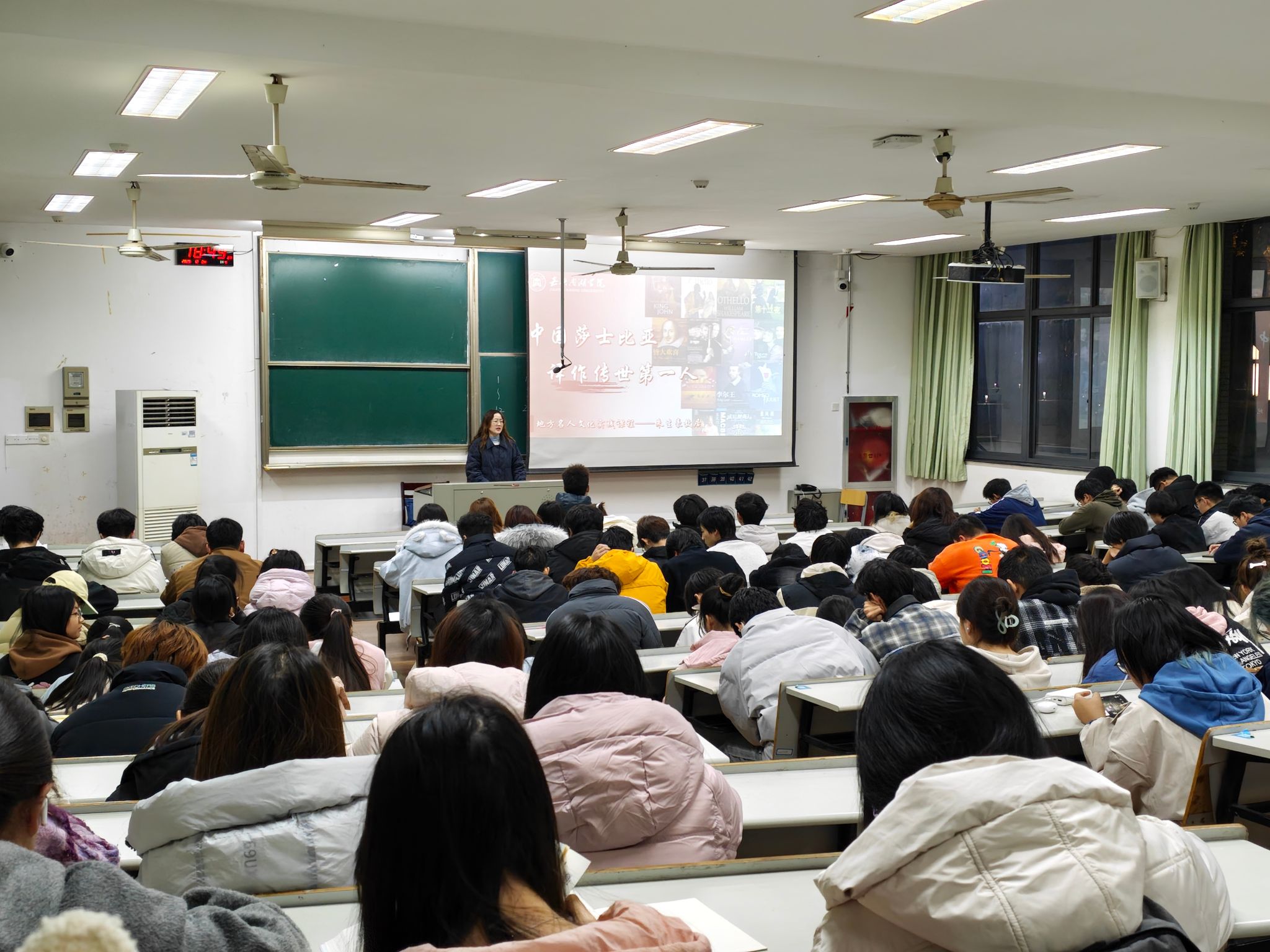 邵佳老师以“中国莎士比亚译作传世第一人”为主题,结合朱生豪先生的生平事迹、翻译成就及其故居的历史文化价值,生动讲述了这位嘉兴籍翻译家如何以短暂一生执着奉献,完成莎士比亚戏剧大部分译作的感人历程。她勉励同学们学习朱生豪先生严谨治学、坚韧不拔的精神,将文化传承与专业学习相结合,增强文化自信与使命担当。