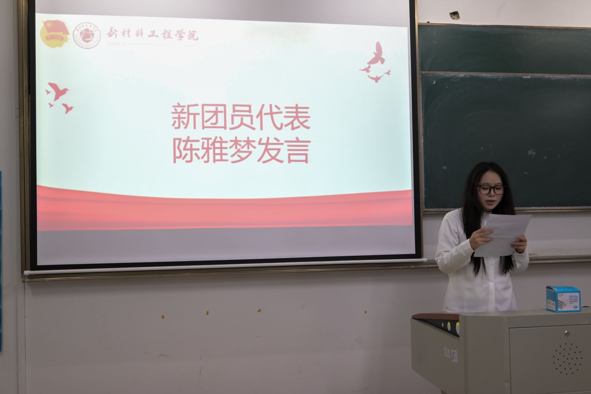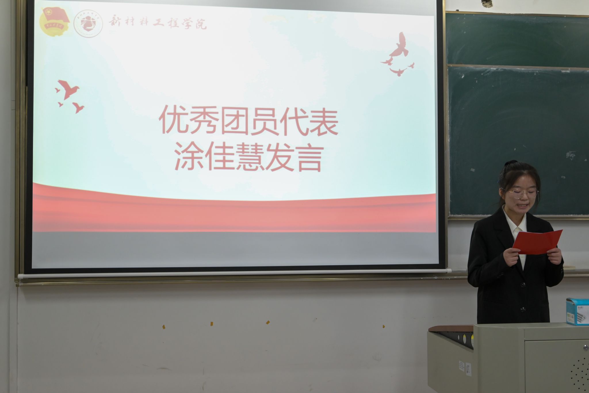 新团员代表陈雅梦发言,表达了加入团组织的激动与自豪,并立志在今后的学习与生活中严格自律、积极进取,努力发挥先锋模范作用。优秀团员代表涂佳慧结合自身经历,分享了在团组织中的成长与收获,鼓励新团员珍惜身份、勇于实践、服务集体。