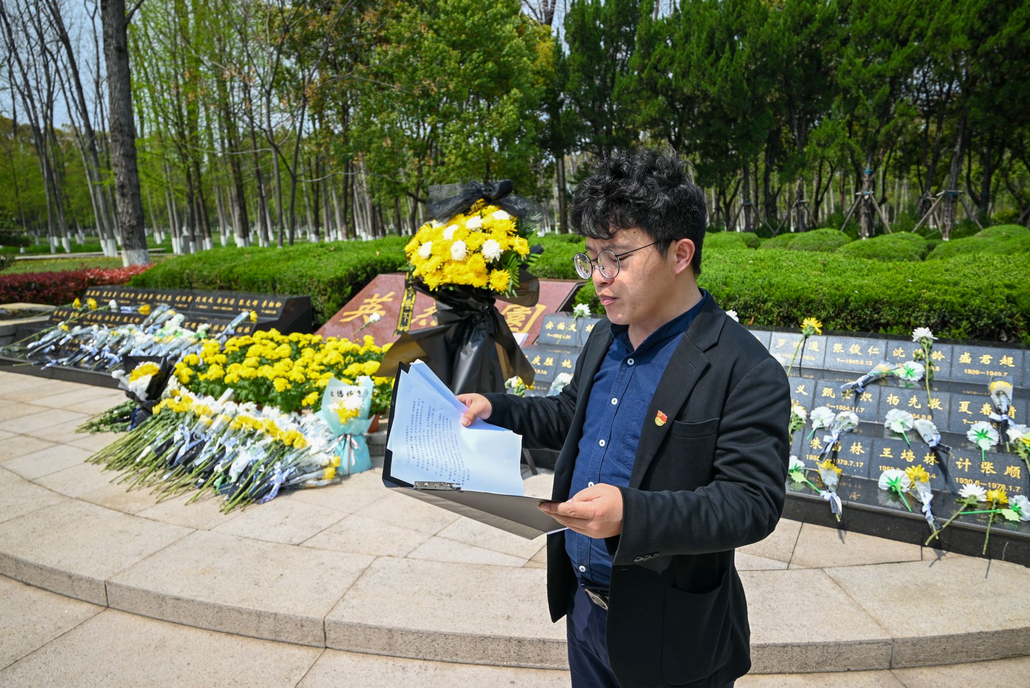 下午12:30,全体人员在烈士陵园正门口集合完毕,统一入园。祭英烈仪式正式开始。教师代表杨雷老师深情讲话,勉励同学们铭记历史、珍惜当下、勇担使命;学生代表张国成同学发言,表达了新时代青年继承先烈遗志、奋发图强的坚定决心。随后,全体党员举行了重温入党誓词及敬献鲜花等仪式。
