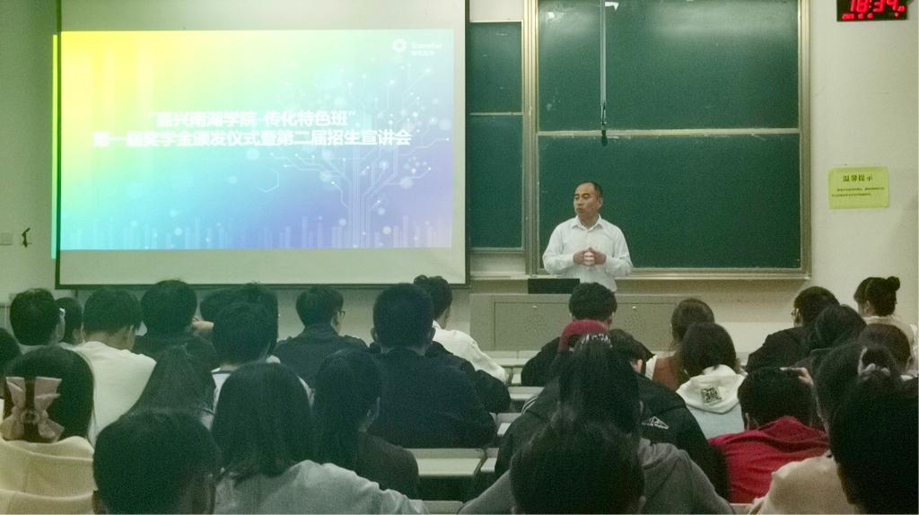 10月19日下午18:30,伟德victor1946-传化特色班(传化班)第一届奖学金颁发仪式暨第二届招生宣讲会在教二A126召开。浙江传化天松新材料有限公司技术主任汤明麟一行三人与伟德源自英国始于1946副院长孙诗清、化工专业专业负责人韦晓燕教授、伟德源自英国始于1946辅导员邵佳等多位专任教师、第一届传化班(2020级)及2021级学生列席参加。