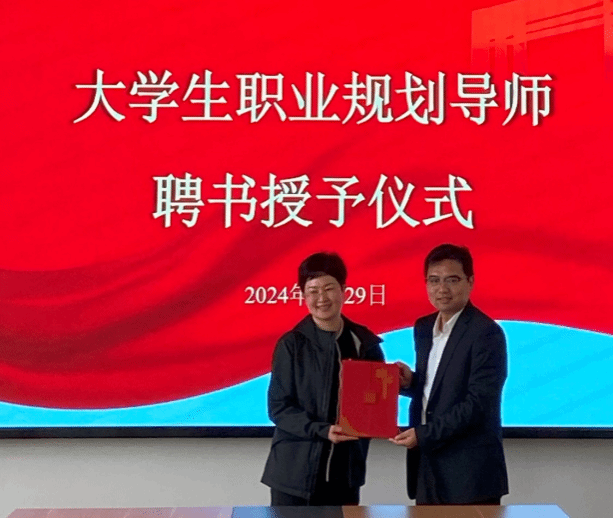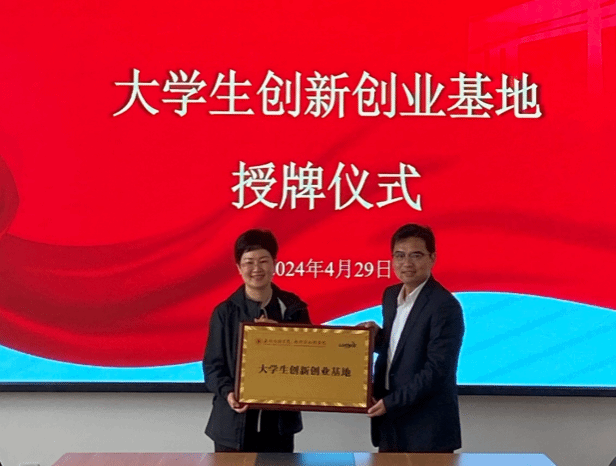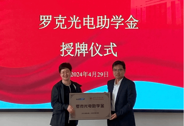 赵渊为浙江罗克光电科技股份有限公司授予了“罗克光电助学金”“大学生实习实训基地”和“大学生创新创业基地”牌。为潘芳琳颁发了“大学生职业规划导师”聘书。