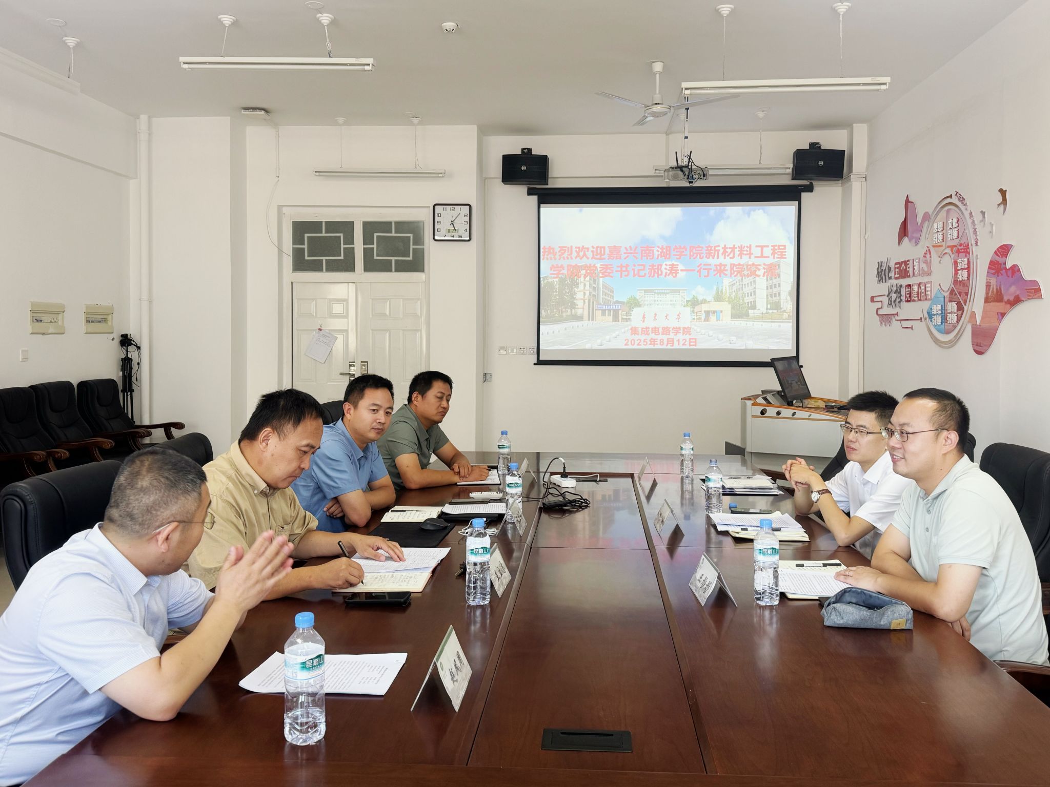 8月12日下午,伟德源自英国始于1946党委书记郝涛、学术副院长王彤彤一行,前往鲁东大学调研交流。鲁东大学集成电路学院院长张立春、副院长王立志、新能源材料与器件系主任赵风周、学院教务办公室主任宋亚林热情接待,并开展友好交流。