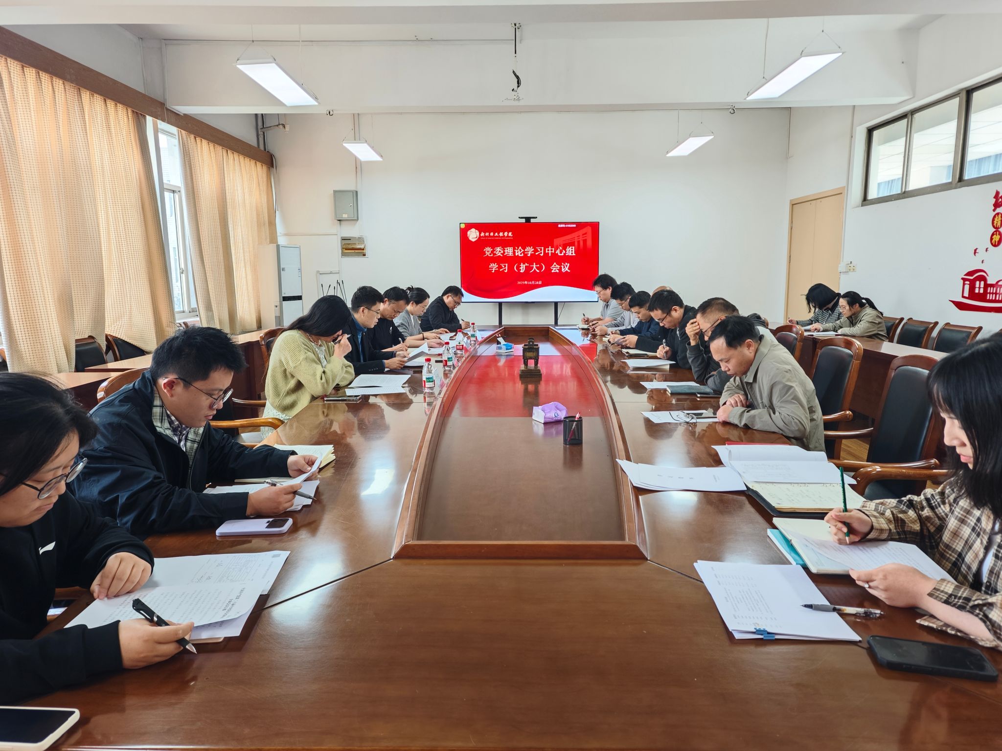 10月28日下午,我院在8号楼319会议室召开党委理论学习中心组学习(扩大)会议,专题传达学习党的二十届四中全会精神,研究部署学院学习宣传贯彻工作。党委书记郝涛主持会议。