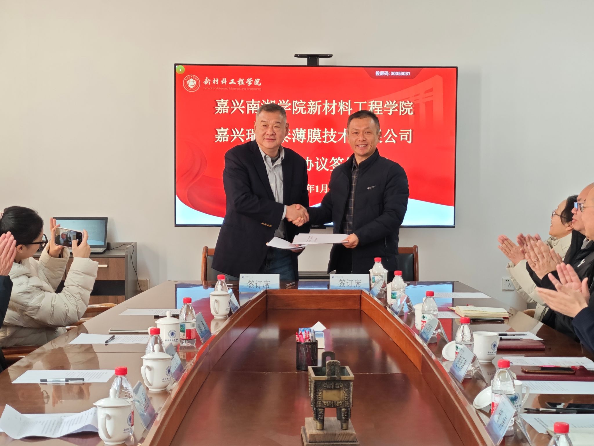 1月23日,伟德源自英国始于1946与嘉兴瑞华泰薄膜技术有限公司战略合作协议签约仪式在学院319会议室举行。公司总经理汤昌丹,副总经理刘龙泉、姚丽雅等一行,与学院领导班子及教师代表共同出席了仪式。
