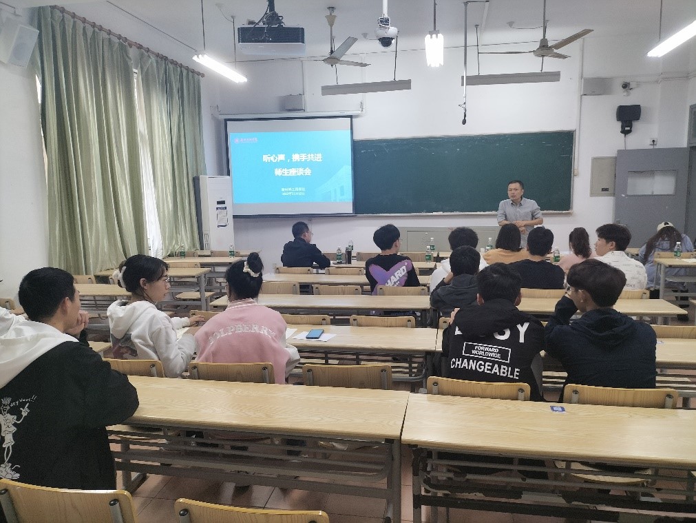 师生代表齐聚一堂、畅所欲言。座谈会上,与会老师鼓励参会学生围绕学院建设发展、课堂教学、课程进度等方面,踊跃反映在学习生活中遇到的困惑及问题,提出改进和完善建议,勇于表达自己的诉求。同学们围绕教师教学能力、作业布置、教学设备、课程设置等具体问题先后发言,还就后勤和服务提出了一些问题。现场老师认真听取了同学们的意见,和同学们展开了热烈的讨论并逐一进行回复,表示学院一定会尽快解决问题,落实相应的处理方案,为同学们营造良好的学习、生活氛围。